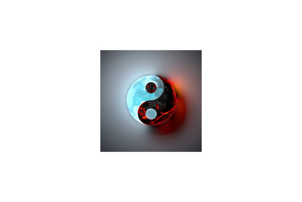 中国の「陰陽(太極図)」のように、光の部分と黒い部分が混ざり合っていく。