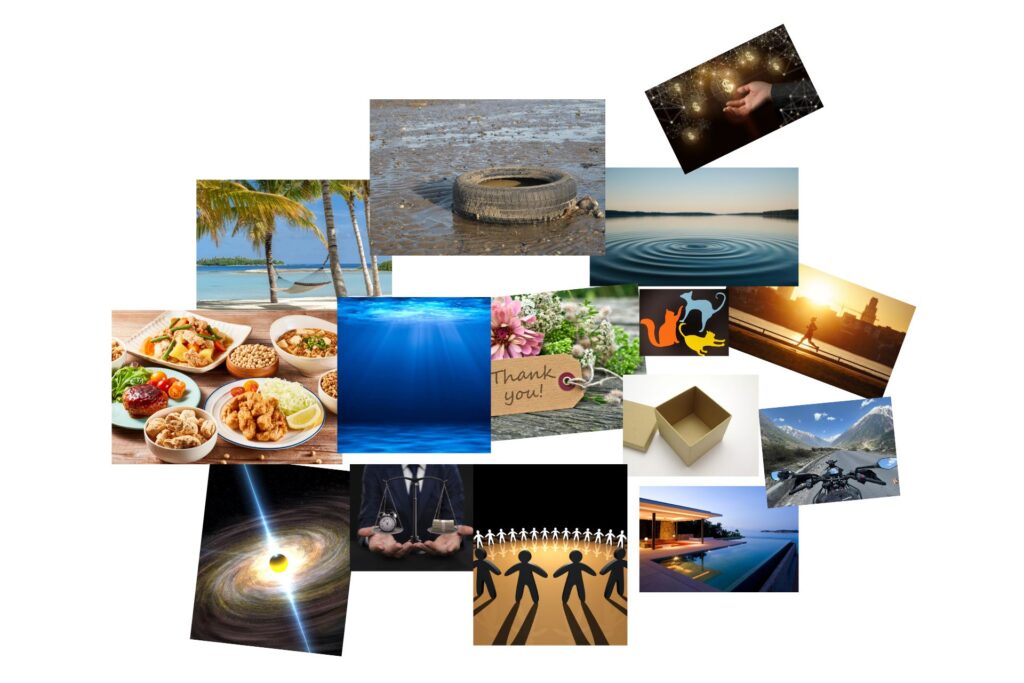 このコラージュを作ろうと思ったきっかけは、日々のカウンセリングの中でクライアントさんたちから学ばせてもらった気づきにあります。