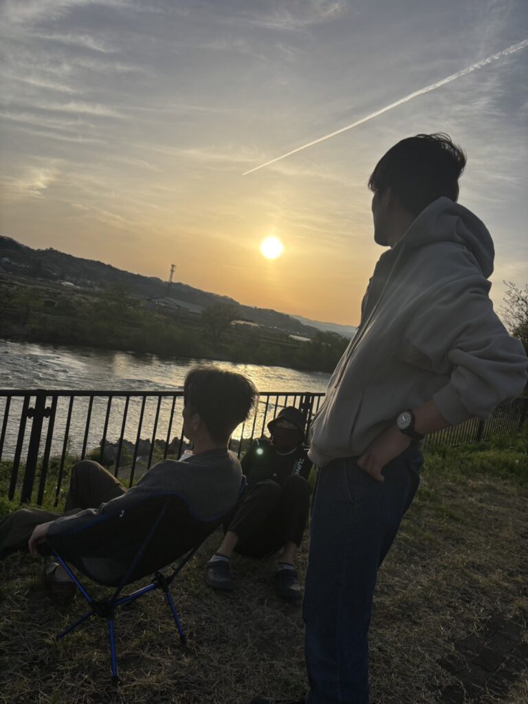 川沿いで桜を眺めながら、大好きな仲間たちとお花見です。